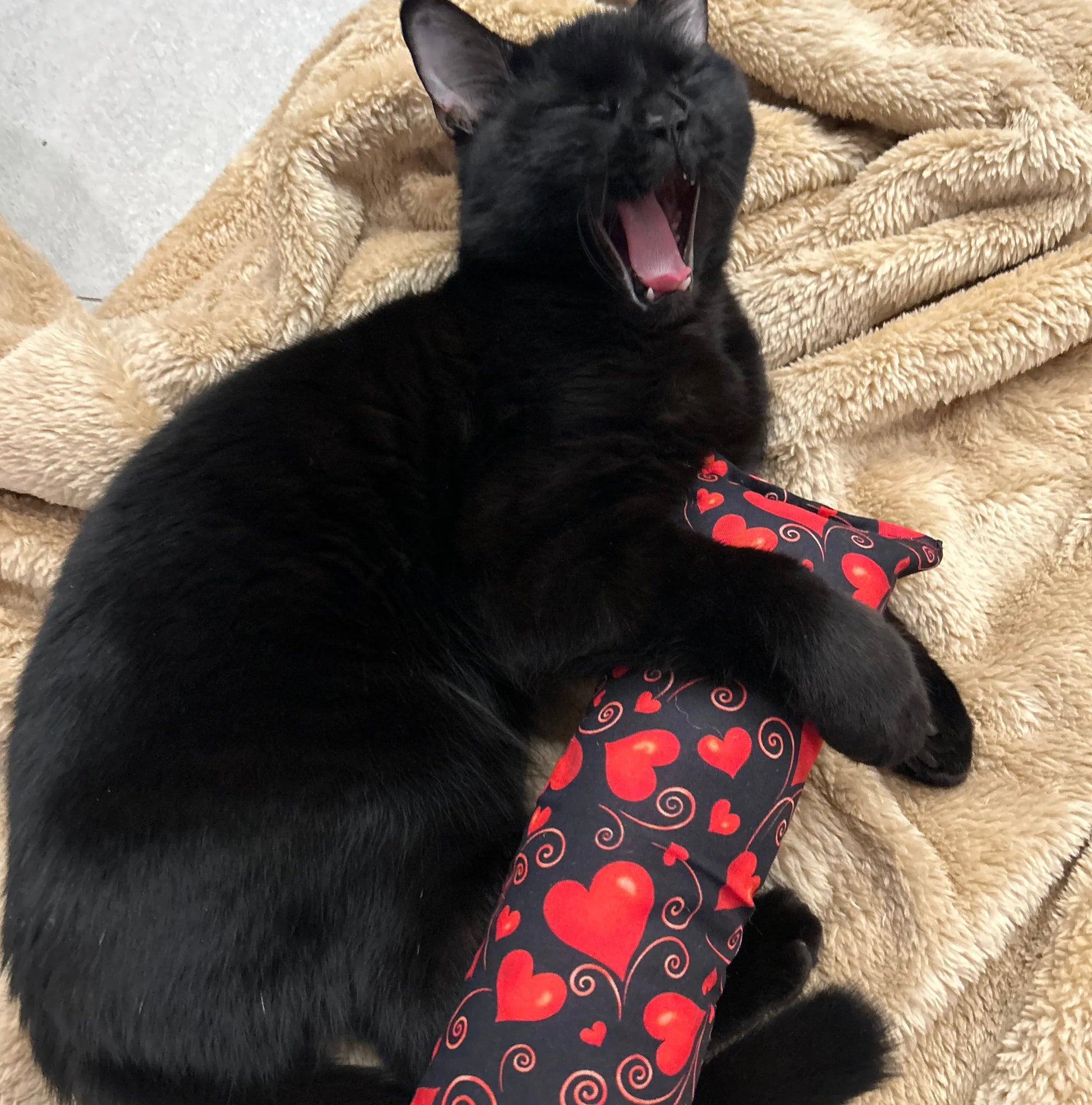 Designed for cats who steal your heart year round. Soft, handmade, perfect for grabbing, bunny kicking, and wrestling. Because your cat is your Valentine anyways.